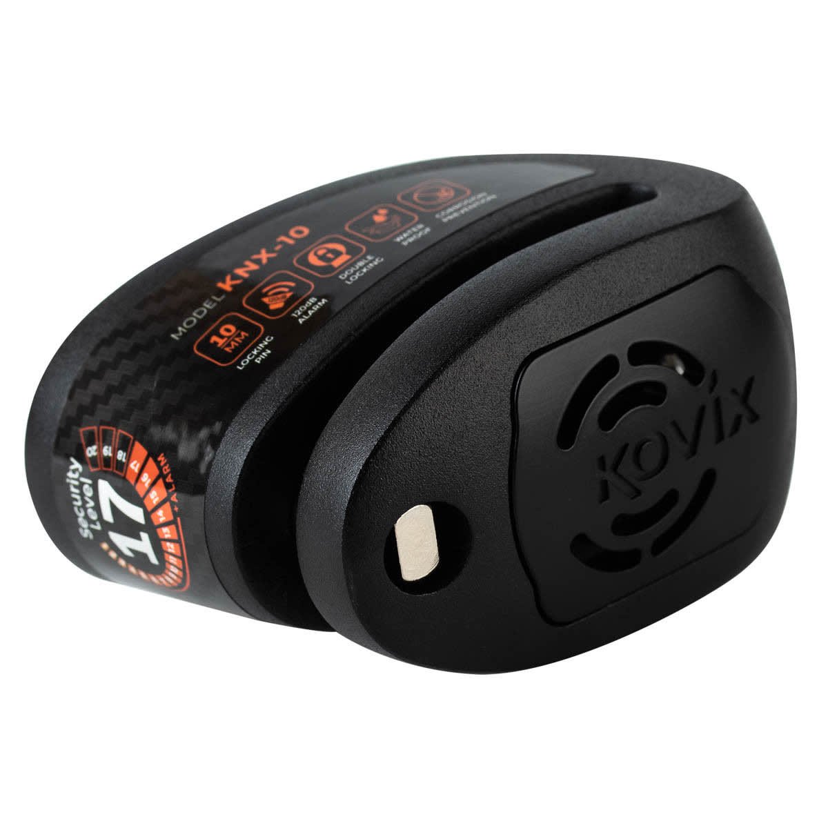 El Kovix KNX10 es un candado de disco de alto nivel que combina tecnología de bloqueo físico con sistema de alarma sonora, brindando una protección activa y disuasiva para tu moto. Fabricado con materiales de alta resistencia, está diseñado para soportar intentos de robo, clima extremo y el uso diario más exigente.