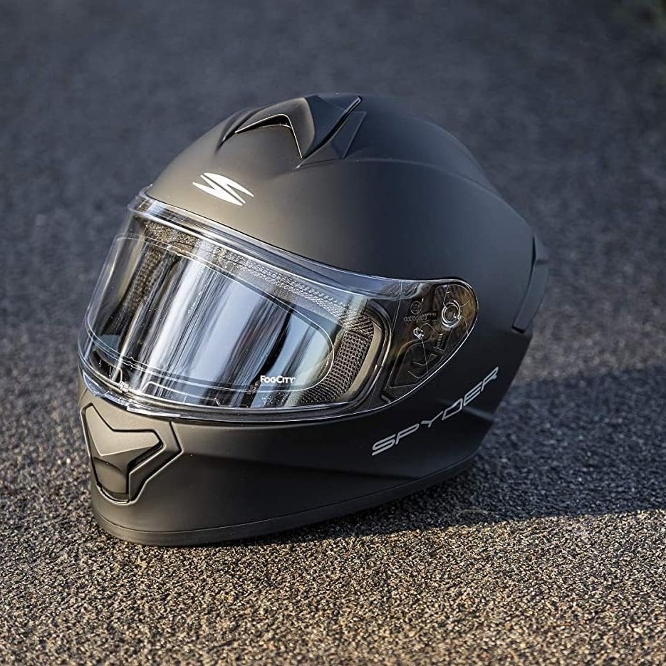 Motociclistas que utilizan cascos sin pines en el visor.